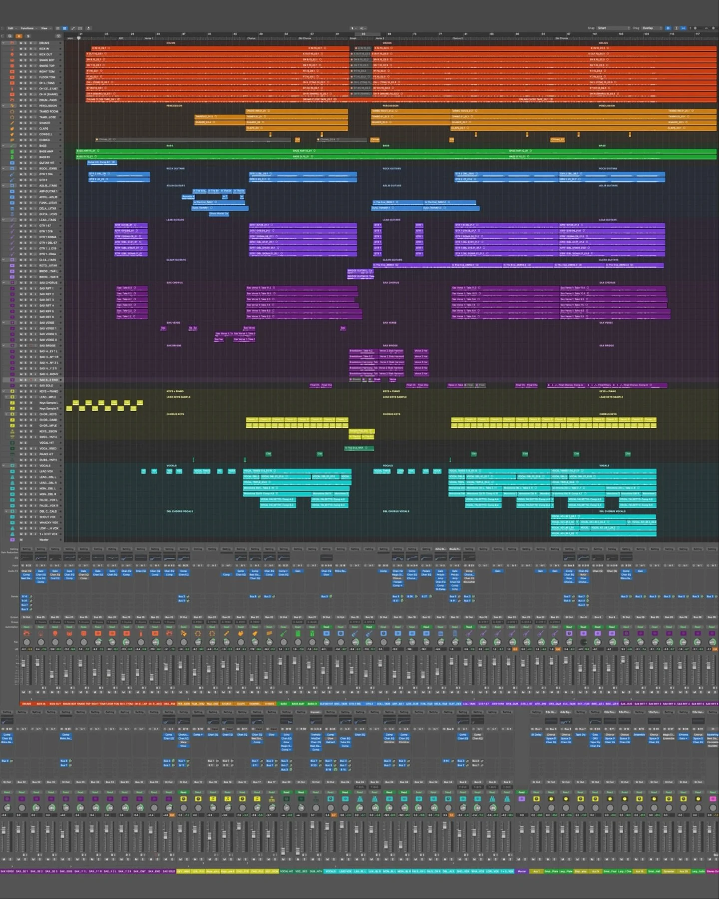 This is the full Logic Pro timeline for “In The End” the first single from our debut album.